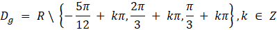 Do dziedziny funkcji g nie będą należeć te argumenty x, dla których wartość mianownika ułamka jest równa 0 oraz te argumenty, dla których funkcje tangens nie są określone. Aby wyznaczyć tę dziedzinę, musisz rozwiązać trzy równania.