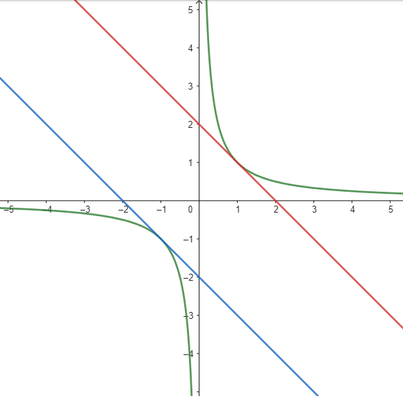 Istnieją styczne do wykresu funkcji f spełniające warunki zadania. Są to proste o równaniach: