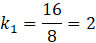 Podane trójkąty są podobne z cechy BKB oraz ich skala podobieństwa k jest równa 2.