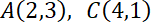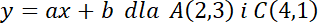1. Oblicz współczynniki a i b równania prostej y = ax + b dla punktów A(2, 3) i C(4, 1):