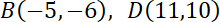 15. Wierzchołki B i D zgodnie z ruchem wskazówek zegara to B(-5, -6) i D(11, 10).