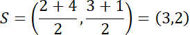 Dla punktu S(3, 2) należącego do prostej BD: