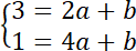 2. Rozwiąż układ równań w celu obliczenia współczynników a i b: