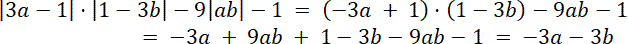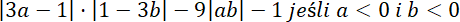 Skoro a<0 i b<0, to |3a - 1| będzie zawsze ujemne i przy opuszczaniu musisz zmienić znaki. Wartość |ab| będzie zawsze dodatnia i tu nie musisz zmieniać znaków. Wartość |1 - 3b| również będzie zawsze dodatnia i tutaj też nie musisz zmieniać znaków: