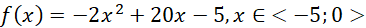 , więc jest to parabola z ramionami skierowanymi do dołu, dla której wierzchołek przyjmuje największą wartość. Wierzchołek znajduje się poza dziedziną funkcji, zatem wartości skrajne będą określone przez krańce dziedziny.