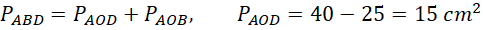 Wykonaj rysunek pomocniczy i oblicz pole trójkątów ABD, ABC i AOB.