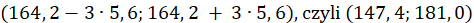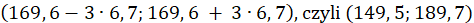 Do każdej z wartości dodaj lub odejmij odpowiednio odchylenie standardowe jako