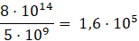 Na początek zapisz liczbę w postaci ułamka, aby łatwiej było zauważyć zależności. W liczniku oraz mianowniku masz mnożenie, więc możesz skracać, co z czym chcesz. Dlatego dzielisz liczbę przez liczbę oraz 10 do potęgi do 10 do potęgi. Wynik zapisz, a później, jeżeli nie jest w postaci notacji wykładniczej, zapisz w takiej postaci.