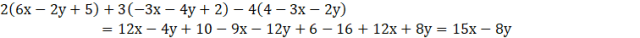 W tym zadaniu musisz za A, B oraz C wpisać podane sumy algebraiczne. Następnie musisz zredukować wyrazy podobne, czyli dodać podobne do podobnego, odjąć podobne od podobnego.