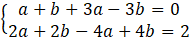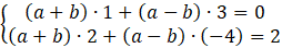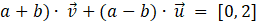 Mnożąc wektor przez liczbę (w tym przypadku przez (a + b) – (a – b)), pomnóż przez tę liczbę obie jego współrzędne. Aby obliczyć sumę wektorów doda parami odpowiednie współrzędne wektorów. Ponieważ wiesz, jakie wyniki powinieneś otrzymać (są to współrzędne wektora [0, 2]), możesz zapisać układ równań (pierwsze równanie odpowiada za współrzędną na osi X, drugie Y).