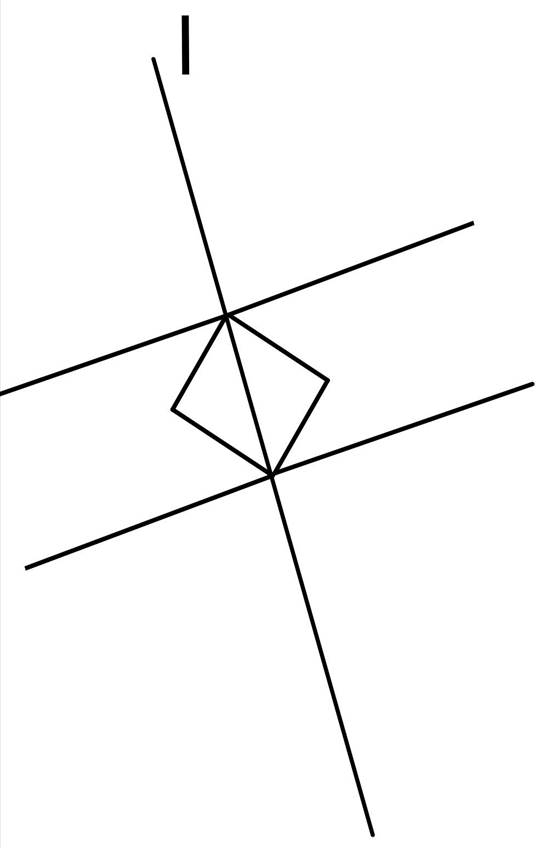 Dla każdego z wierzchołków figury, na prostej prostopadłej do prostej l przechodzącej przez ten wierzchołek, zaznacz punkt jednakowo odległy od prostej co właśnie ten wierzchołek.