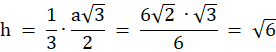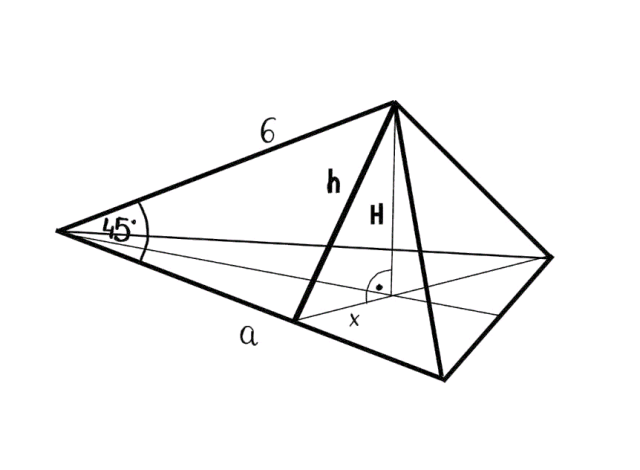 Wiedząc, że krawędź boczna narysowanego ostrosłupa prawidłowego ma długość 6, musisz obliczyć wysokość tego ostrosłupa.