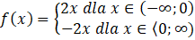 W tym zadaniu musisz skorzystać z tego, że jeśli liczba x jest ujemna to wartość bezwzględna z niej jest liczbą przeciwną do niej (-x), a jeśli jest ona nieujemna to wartość bezwzględna jest równa tej liczbie (x). Musisz rozpisać wzór funkcji f dla liczb mniejszych od 0 i większych bądź równych 0.