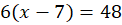 Następnie przyrównaj iloczyn liczb 6 i x – 7 do 48 i rozwiąż otrzymane równanie: