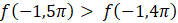 Aby podany warunek był spełniony, funkcja f powinna być funkcją malejącą (przedziałami). Funkcją spełniającą podany warunek może być funkcja cotangens.