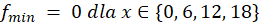 Funkcja przyjmuje wartość najmniejszą, jeżeli ta liczba jest podzielna przez 6 czyli daje resztę 0.