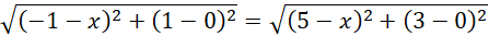 Wyznacz współrzędne punktu oddalonego jednakowo od punktów (-1,1) i (5,3).