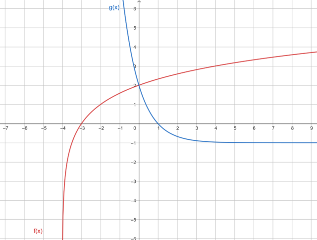 i wiedząc, że wykresy przecinają się w punkcie (0, 2), narysuj te wykresy w jednym układzie.