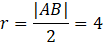 Najpierw oblicz odległość między dwoma punktami, gdyż ta odległość podzielona przez 2 da promień. Następnie użyj wzoru na środek odcinka i otrzymaj środek okręgu.