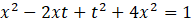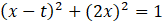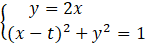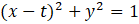 Okrąg o środku w punkcie (t, 0) i promieniu 1 ma równanie w postaci: