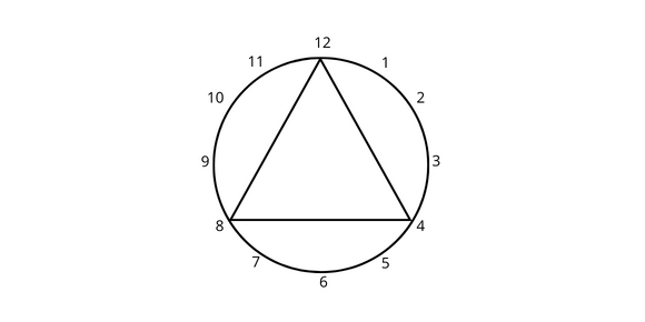 W tym zadaniu narysuj figurę na tarczy zegara przez połączenie punktów przy co ósmej godzinie. Zacznij i skończ na godzinie 12.