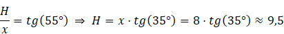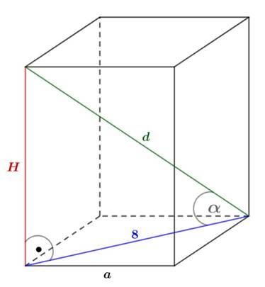 Z zależności trygonometrycznych w trójkącie prostokątnym określ długość przekątnej podstawy (x). Ze wzoru na przekątną kwadratu
