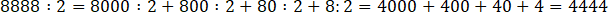 Dużą liczbę możemy zapisać jako sumę jej liczb jedności, dziesiątek itd. Każdą z nich możemy potem podzielić i zsumować wynik.