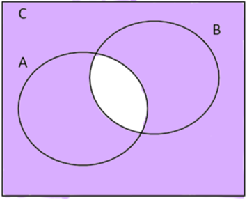 Łatwo możemy zauważyć, że C\A, to część zbioru B bez części wspólnej ze zbiorem A, analogicznie dla C\A. Sumując oba zbiory, otrzymujemy całą przestrzeń z wyłączeniem właśnie przecięcia się tych dwóch zbiorów. Dla zbioru Y otrzymujemy ten sam diagram w bardzo prosty sposób. Od całej płaszczyzny odejmujemy przecięcie zbiorów A i B. Zatem zamalowujemy wszystko oprócz tego przecięcia.