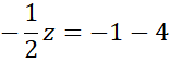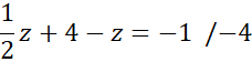 Wykonaj takie działania, by po lewej stronie została sama niewiadoma. Najpierw odejmij od siebie wyrażenia z ,,z”. Potem od obu stron równania odejmij 4. Następnie obie strony równania pomnóż przez -2.