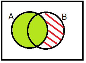 Na diagramie zakoloruj A (zielony) oraz zakreskuj B bez A (czerwone kreskowanie), a następnie znajdź różnicę obu zbiorów (zielone niezakreskowane).