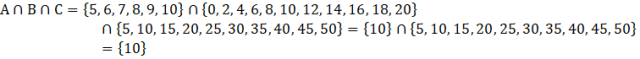 , ponieważ tylko ten element zawiera się w zbiorach A, B i C naraz. 3 kropki między elementami są skróconym zapisem zbioru i oznaczają kolejne liczby. Elementy w tym zbiorze są ustawione według reguły, więc łatwo zgadnąć, jakie elementy będą na miejscu 3 kropek.