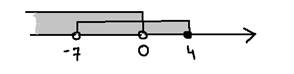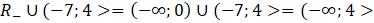 jest to zbiór liczb rzeczywistych ujemnych, dla którego można sporządzić ilustrację graficzną. Narysuj oś liczbową i wyznacz sumę podanych przedziałów liczbowych. Jeśli koniec przedziału jest domknięty, to zaznaczamy go na osi "zamalowaną kropką". Jeśli koniec przedziału jest otwarty, zaznaczamy go, nie zamalowując wnętrza kropki.