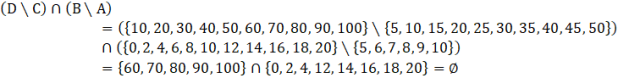 W tym zadaniu musisz wyznaczyć iloczyn różnicy zbiorów D i C oraz różnicy zbiorów B i A.