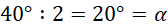jest dwa razy mniejszy od kąta