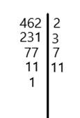 Wiedząc, że liczbę 462 poddano rozkładowi na czynniki pierwsze odpowiedz czy największy z czynników pierwszych w tym rozkładzie jest równy 11 i czy suma wszystkich czynników pierwszych jest równa 21.