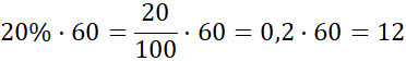 20% liczby 60 to 12