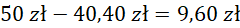 Pani Dorota otrzymała 9,60 zł reszty.