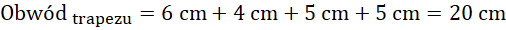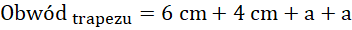 Boki kwadratu oraz ramiona trapezu mają taką samą długość, a więc możesz je oznaczyć jedną literą a. Również obwody figur są takie same, czyli możesz je do siebie przyrównać, a następnie obliczyć, ile wynosi długość boku a. Następnie, podstawiając dane do wzoru na obwód trapezu oraz pole kwadratu, otrzymujesz wyniki.