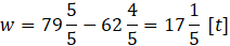 Ilość węgla (w) znajdującego się w trzecim wagonie oblicz , odejmując poszczególne ilości węgla z pozostałych wagonów od całkowitej jego ilości, czyli 80 ton.