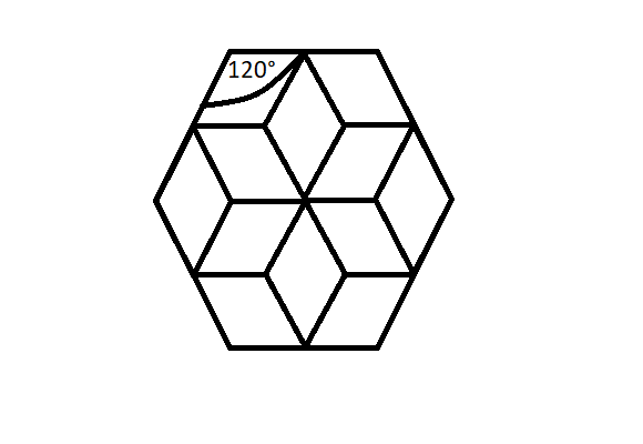Najmniejszy sześciokąt foremny, który można narysować wzdłuż boków klepek, składa się z 15 klepek. – Fałsz, najmniejszy sześciokąt foremny, który można narysować wzdłuż boków klepek, zawiera w sobie 12 klepek. Spójrz na rysunek.