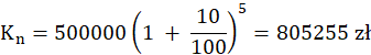 p – oprocentowanie za jeden okres naliczania odsetek