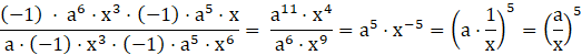 W tym zadaniu musisz przeprowadzić ciąg działań i pamiętać, że jeżeli mnożysz potęgi o tej samej podstawie – wykładniki dodajesz do siebie. Jeżeli dzielisz potęgi o tej samej podstawie – wykładniki odejmujesz od siebie.