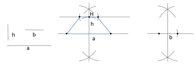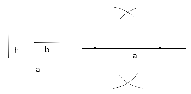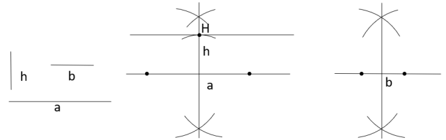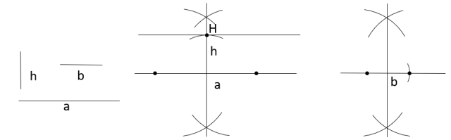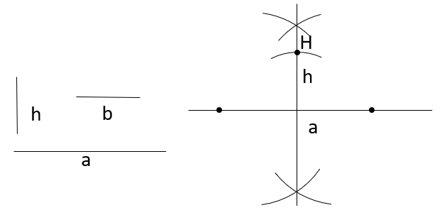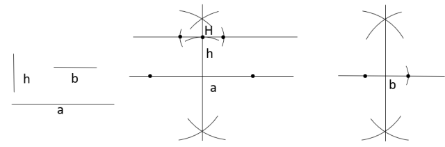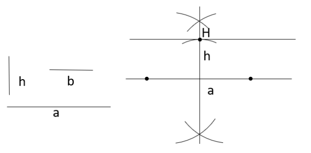 Odmierz cyrklem odcinek 0,5b. Po obu stronach punktu H na prostej równoległej do odcinka o długości a odmierz odcinki o długościach 0,5b.