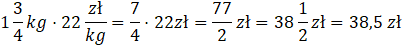Aby obliczyć kwotę, jaką zapłaciła pani Zofia za produkty, pomnóż ilość w kg przez cenę produktu za 1 kg.
