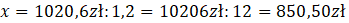 Oblicz promocyjną cenę roweru, jeśli poza promocją kosztuje 1020,60 zł, czyli o