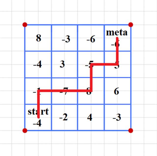 W tym zadaniu musisz znaleźć drogę od startu do mety, której pola zawierają liczby sumujące się do -10.