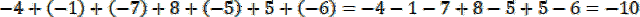 Zauważ, że suma liczb z pól mety i startu daje -10, więc suma cyfr po drodze musi być równa 0. Aby obliczyć sumę tych pól, zamień dodawanie liczb ujemnych na odejmowanie.