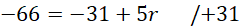 W ciągu arytmetycznym (an), określonym dla każdej liczby naturalnej n≥1, a5 = -31 oraz a10 = -66. Różnica tego ciągu jest równa