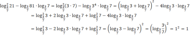 jest liczbą całkowitą, oblicz jej wartość korzystając z własności oraz praw działań na logarytmach, a także wzorów skróconego mnożenia na kwadrat sumy oraz kwadrat różnicy.