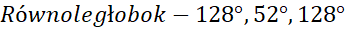 Równoległobok ma dwie pary takich samych kątów, a ich suma wynosi 360o.